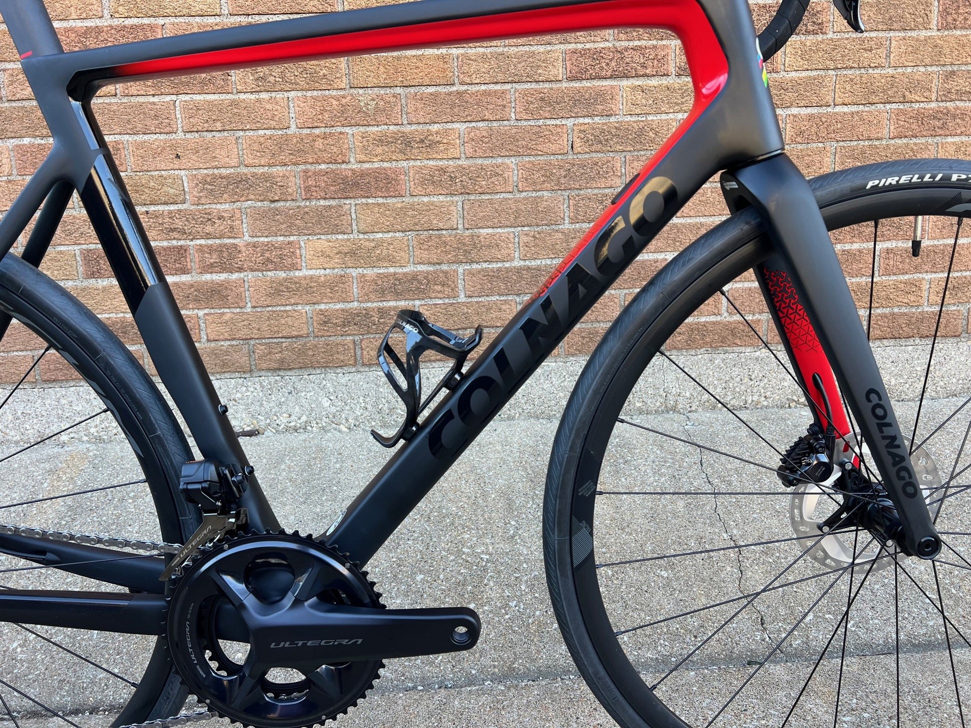 The Colnago V3 Shimano Ultegra Di2 12 Speed Road Bike combines technical solutions aimed at lightness along with other details designed to favor aerodynamics. The frame is monocoque carbon with a clean, essential design and can fit tires up to 28 mm. With the V3 you get a beautiful, fast Colnago that won't go unnoticed.
